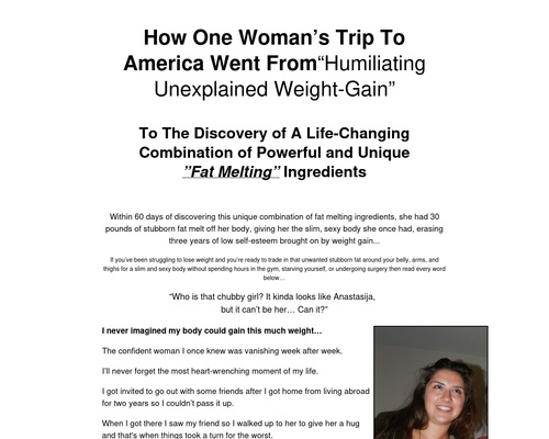 Within 60 days of discovering this unique combination of fat melting ingredients, she had 30 pounds of stubborn fat melt off her body, giving her the slim, sexy body she once had, erasing three years of low self-esteem brought on by weight gain…