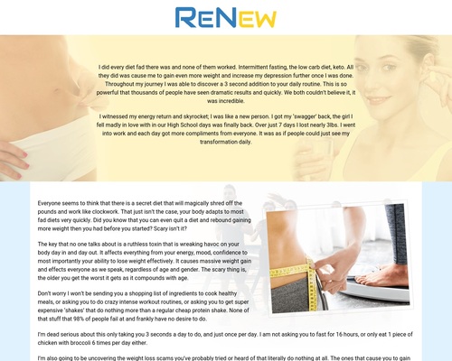 I just wanted to thank you so much James for changing my life forever! I went ahead and got 6 bottles of ReNew and have noticed an 11-pound weight loss within the first 2 weeks. I’m absolutely blown away!!!