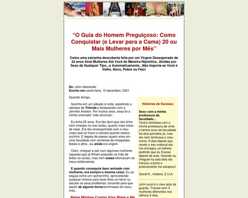 Primeiramente quero lhe agradecer pelo livro! É excelente e eu transei com 4 mulheres em duas semanas! Estou obviamente super feliz.