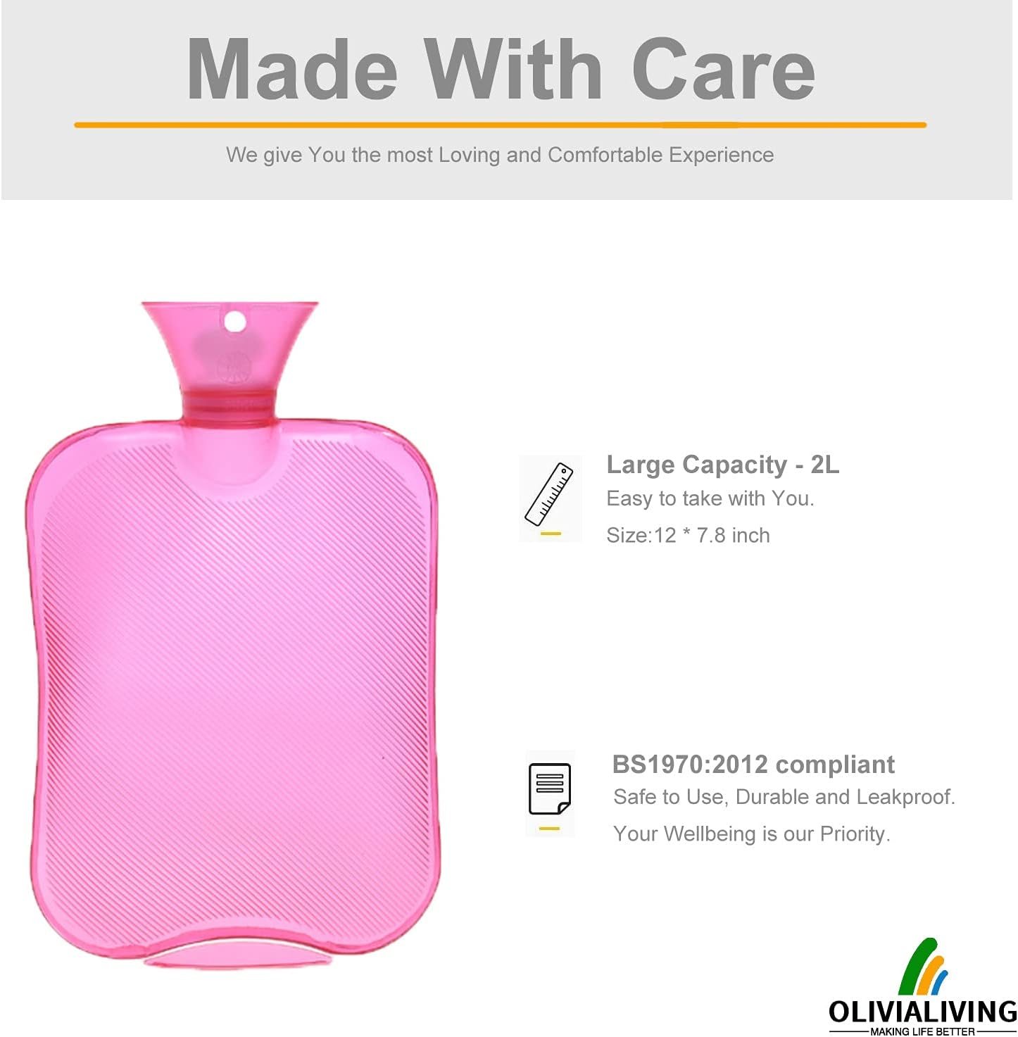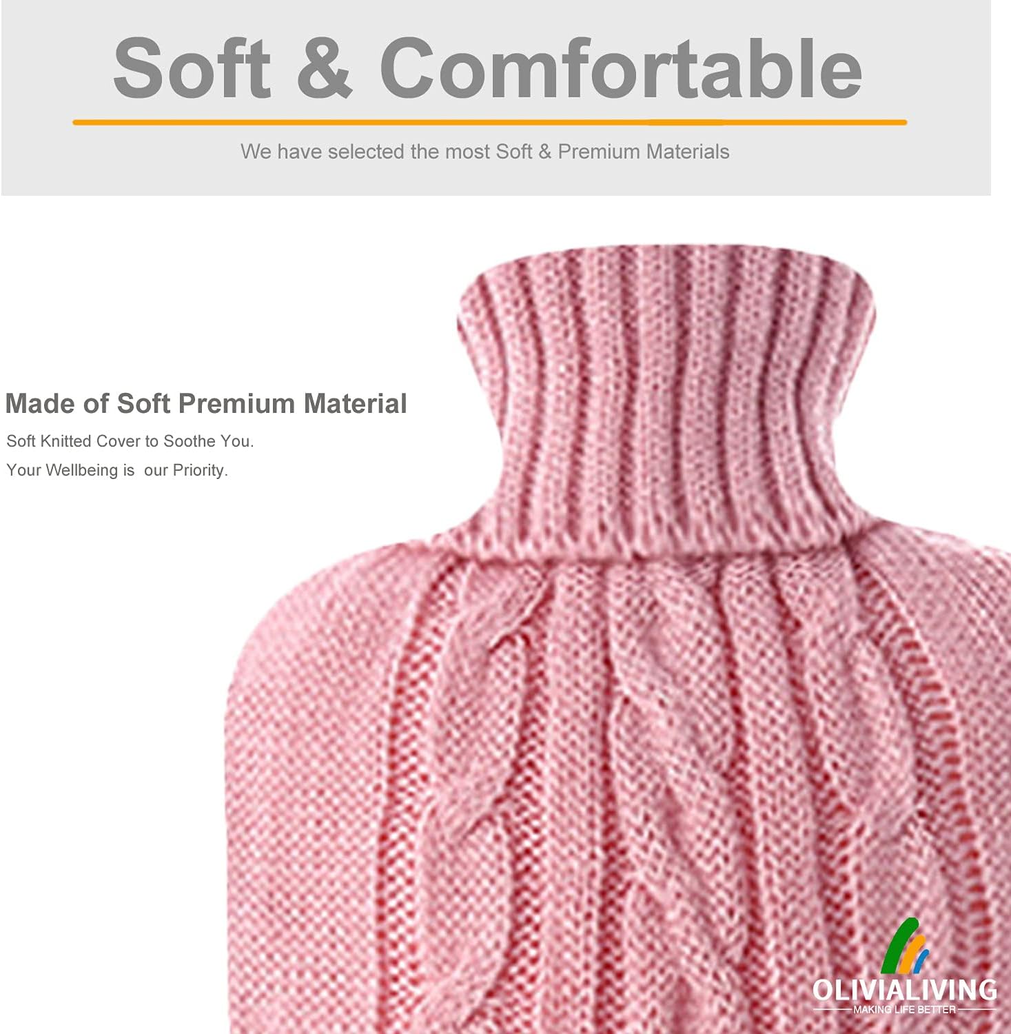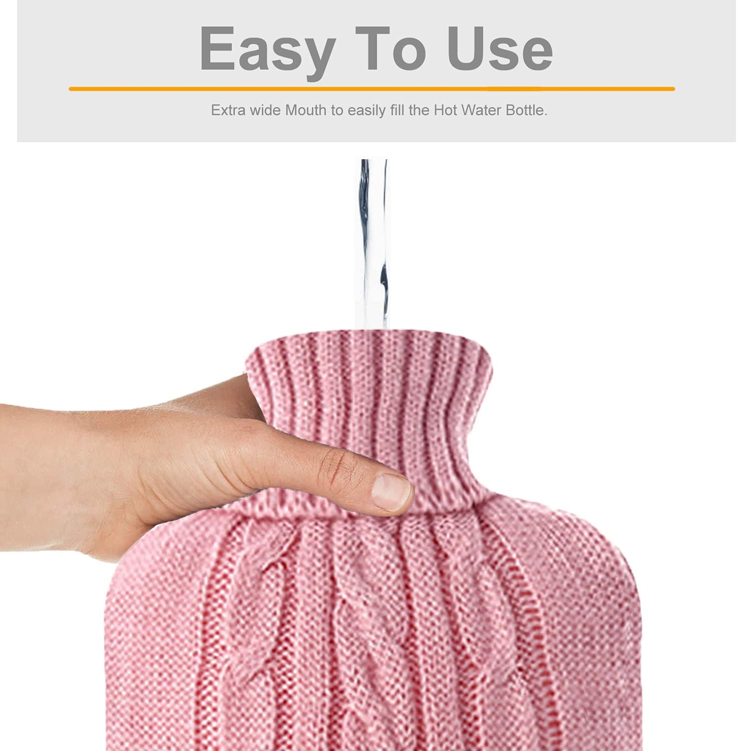 👍 Care Instruction – Grid texture makes skin contact safer and more comfortable. Comes with an elegant knitted hot water bag cover to prevent the hot rubber from being in direct contact with your skin to cause burns, plus it has a more classy and personalized look. The hot water bottle rubber should be replaced after two years of use. And check stopper for wear and tear damage at regular intervals.