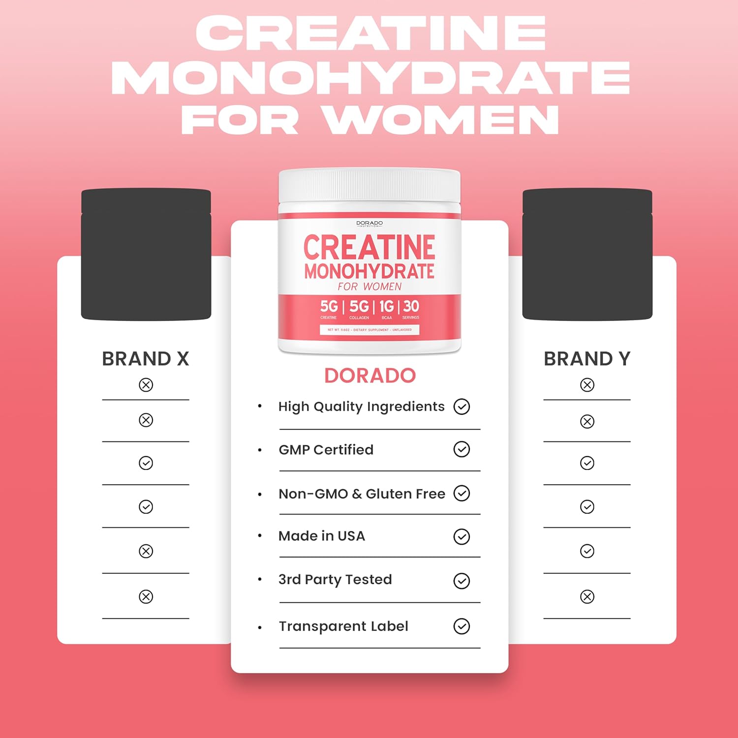 Creatine for Women | Creatine Monohydrate Powder + 5000mg Collagen + 1000mg BCAA 2:1:1 Powder (30 Serving) Supports Glutes, Lean Muscles, Recovery, Energy & Stamina – Non-GMO, Gluten Free – USA Made