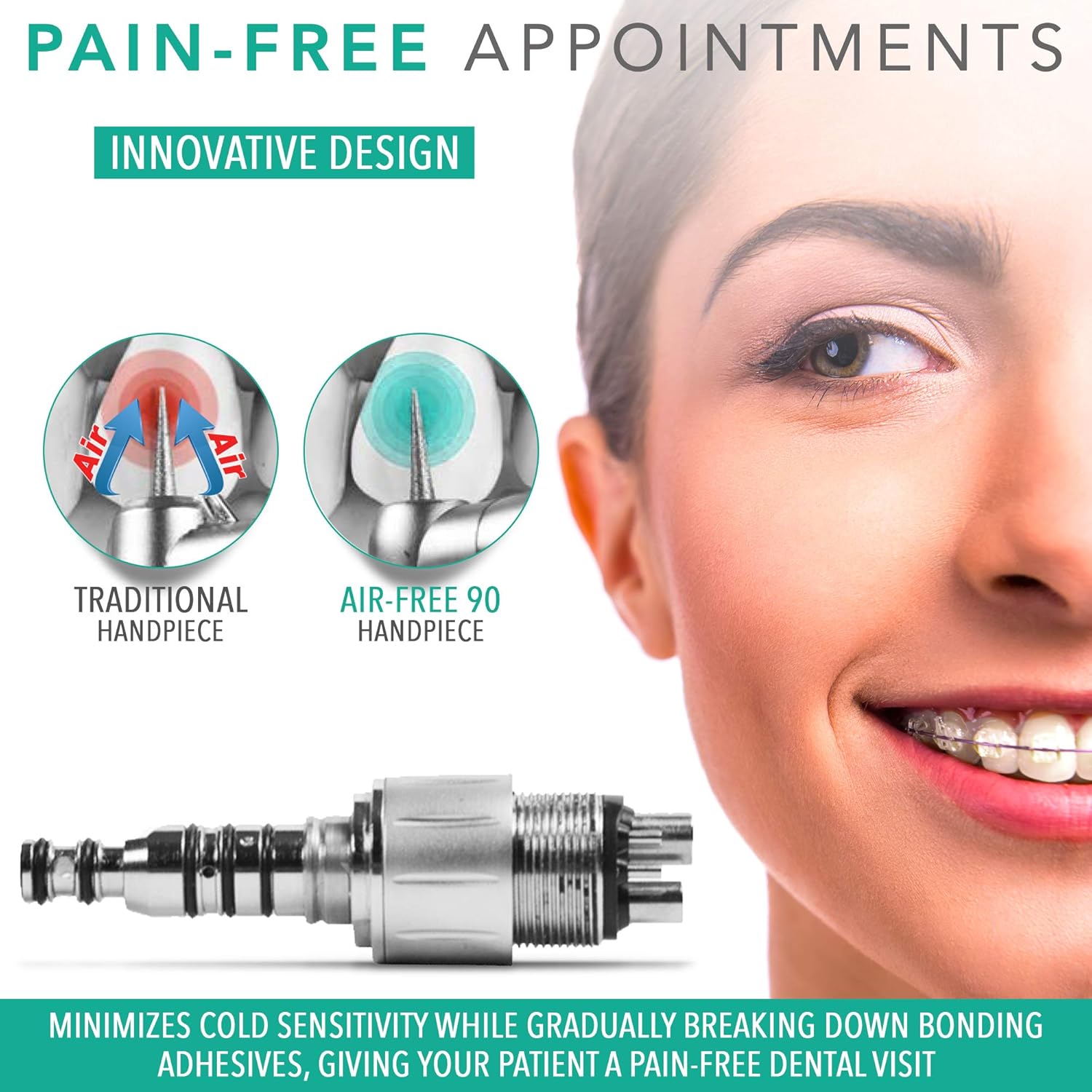 PAIN-FREE APPOINTMENTS: This high-speed handpiece is designed to minimize cold sensitivity while gradually breaking down bonding adhesives, giving your patient a pain-free dental visit.