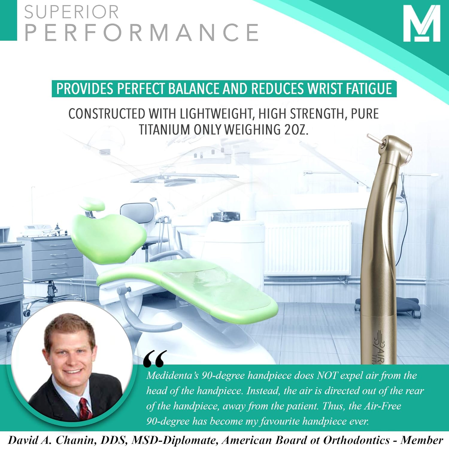 MEDIDENTA Air Free 90 Titan Ortho – High-Speed Dental Handpiece With Air-Free 360 Degree Swivel Coupler + 18W Power for Superior and Pain-Free Debonding