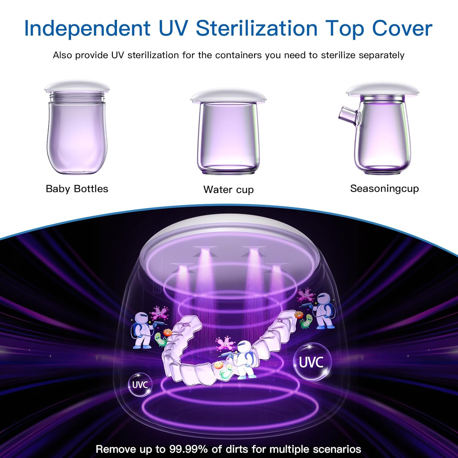 【Unique Rechargeable U/V Light Lid】Our denture cleaner machine has a detachable charged cover lid, which equipped with 4 powerful u/v light helps to providing higher level of cleanliness. Charging the lid with USB-C cable, separately can be used for other items: baby bottles, water cup and other container filled in small items(key, jewelry…) which need U/V clean. Midomi is the ultimate solution for odor-free dentures, retainer and mouth guard cleaner!