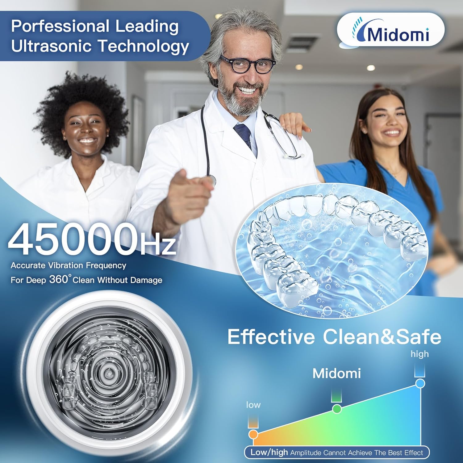 【Midomi Innovative Clean Tech】 Our technician ensures the retainer cleaner machine employs the latest ultrasonic cleaning tech for most aligner users, that utilizes high-frequency micro-vibrations to create tiny bubbles, penetrating even the most inaccessible micro-cracks and surfaces, offering 360° daily/deep clean for all dental appliances, while removing stubborn stains and grease, prevent surface scratches and material damage