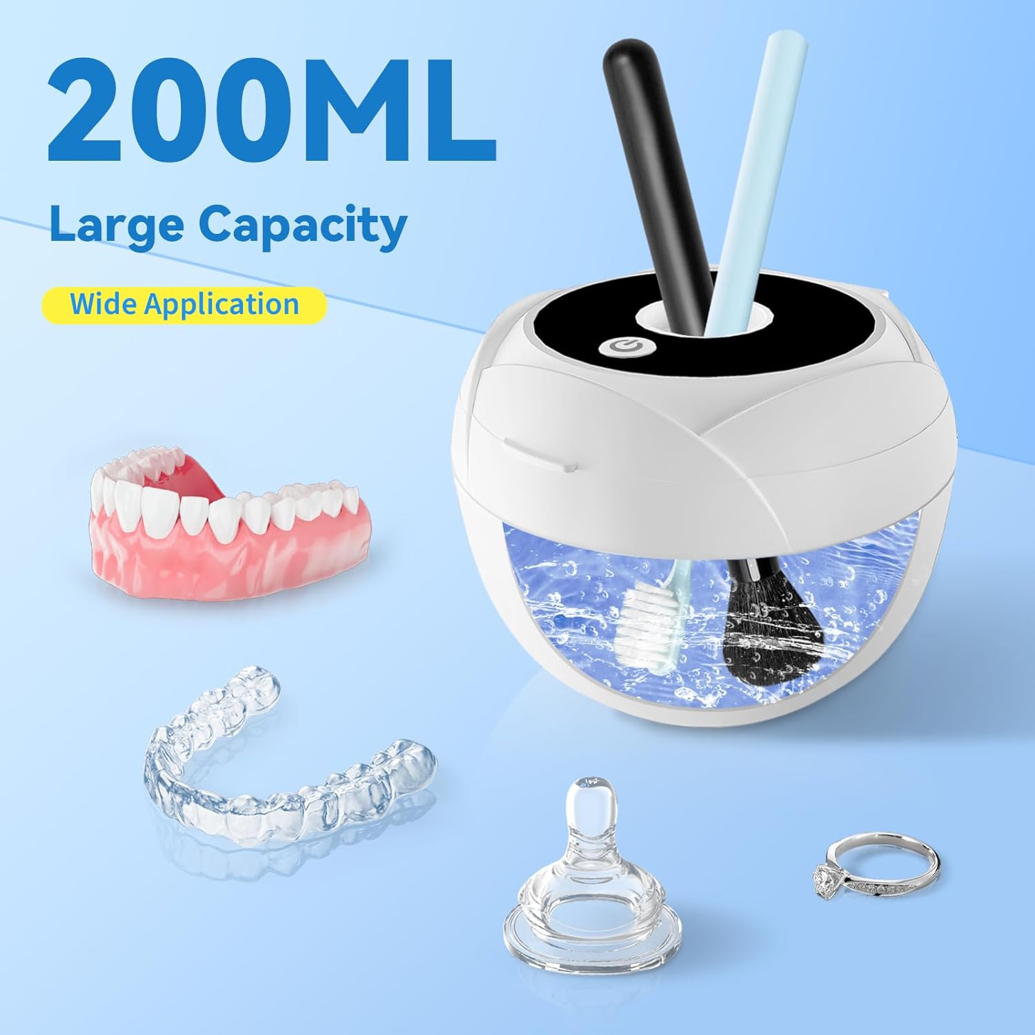 Preferred by Most Aligner Users:Our ultrasonic retainer cleaner utilizes advanced 25W high-efficiency power and 45kHz ultrasonic frequency to provide a thorough 360-degree cleaning for braces, dentures, aligners, night guards, and mouth guards. This powerful cleaning technology is also perfect for more delicate items like jewelry, rings, and waterproof watches. For best results, use with specialized cleaning tablets, mouthwash, or professional cleaning solutions.