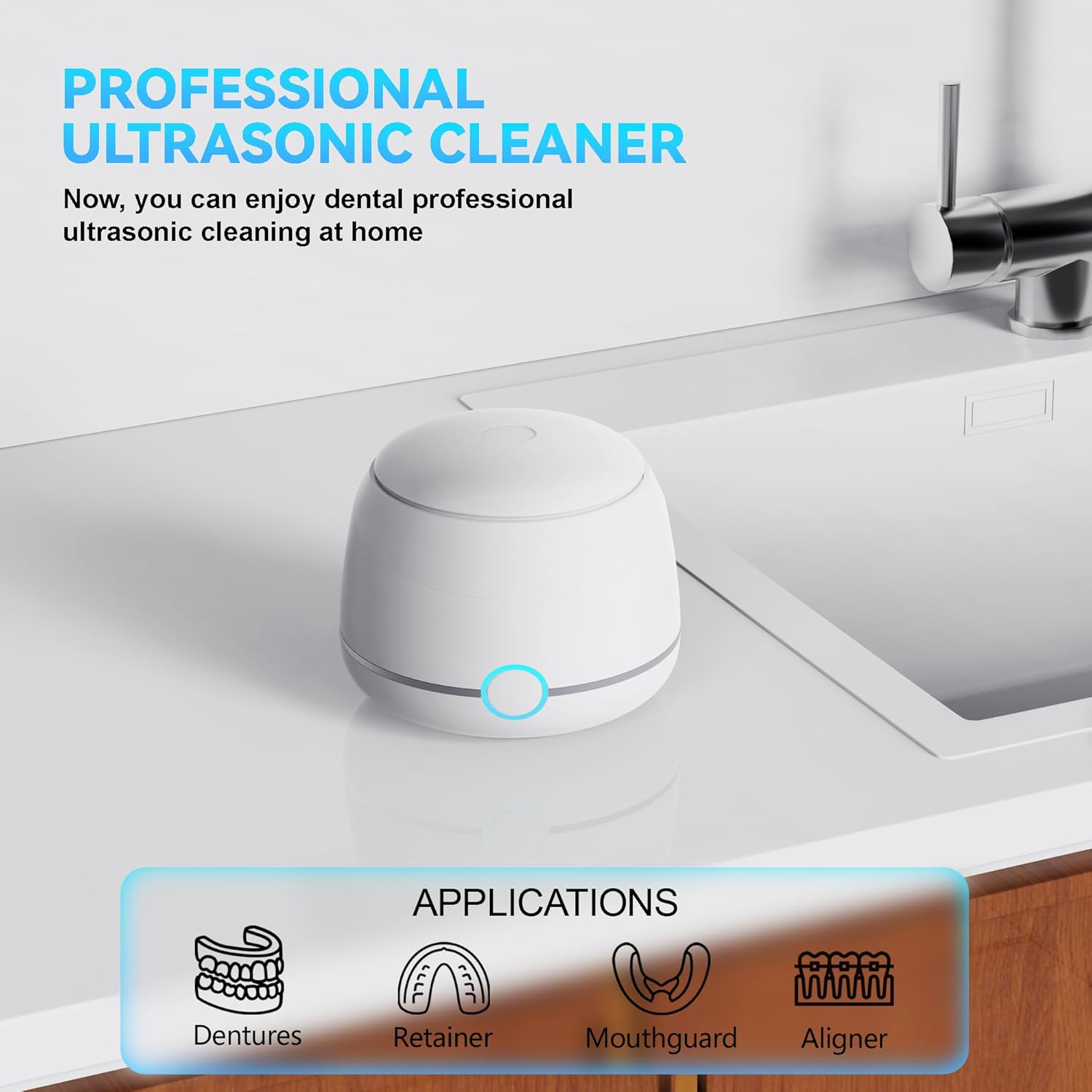 Home Dental Health Ultrasonic Retainer Cleaner Machine Pro, Quickly Completes Denture Brushing and Bathing, Deep Cleaning, and Effectively Prevents Aligner Discoloration – White